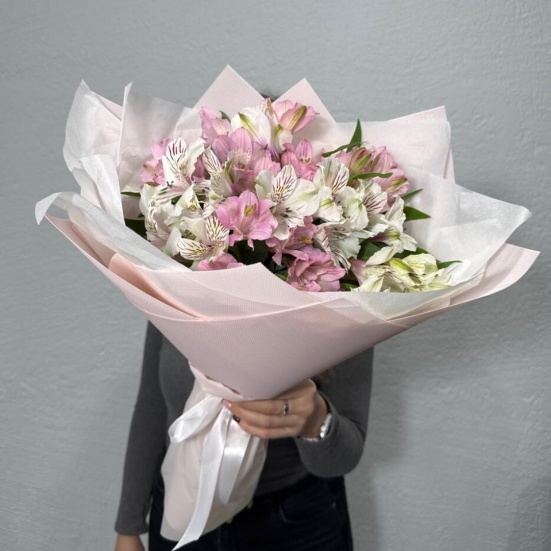 Очень нежный и симпатичный букетик, заказывал сестренке на юбилей. Курьер доставил без опозданий, в красивом ярком оформлении.