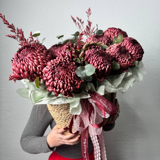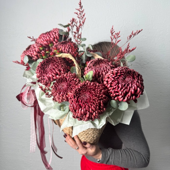Очень нежный и симпатичный букетик, заказывал сестренке на юбилей. Курьер доставил без опозданий, в красивом ярком оформлении.